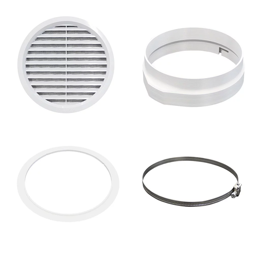 - un anneau de sécurité blanc pour fixer la grille d’aération sur des vitres en verre synthétique ou des panneaux de contreplaqué d’une épaisseur de 1,5 à 4 mm