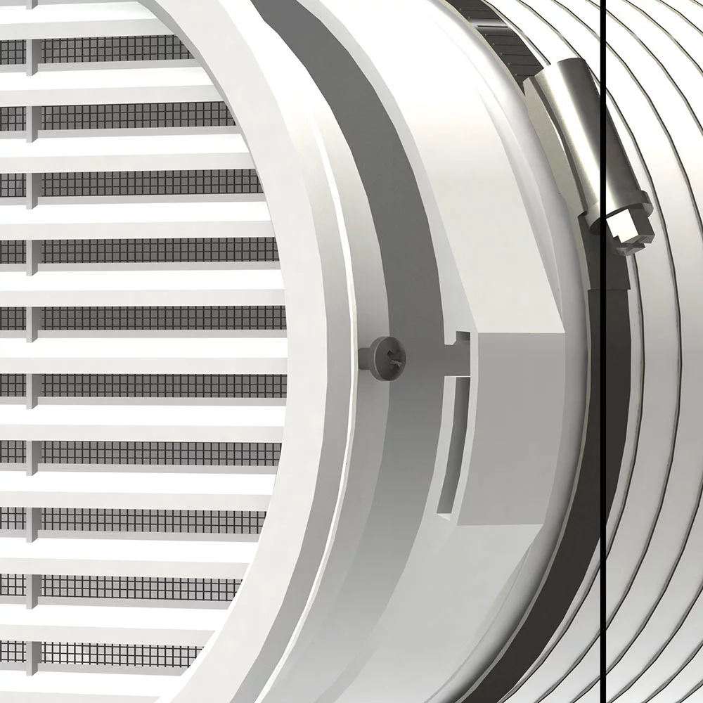 - une grille d’aération blanche résistante aux UV avec une moustiquaire