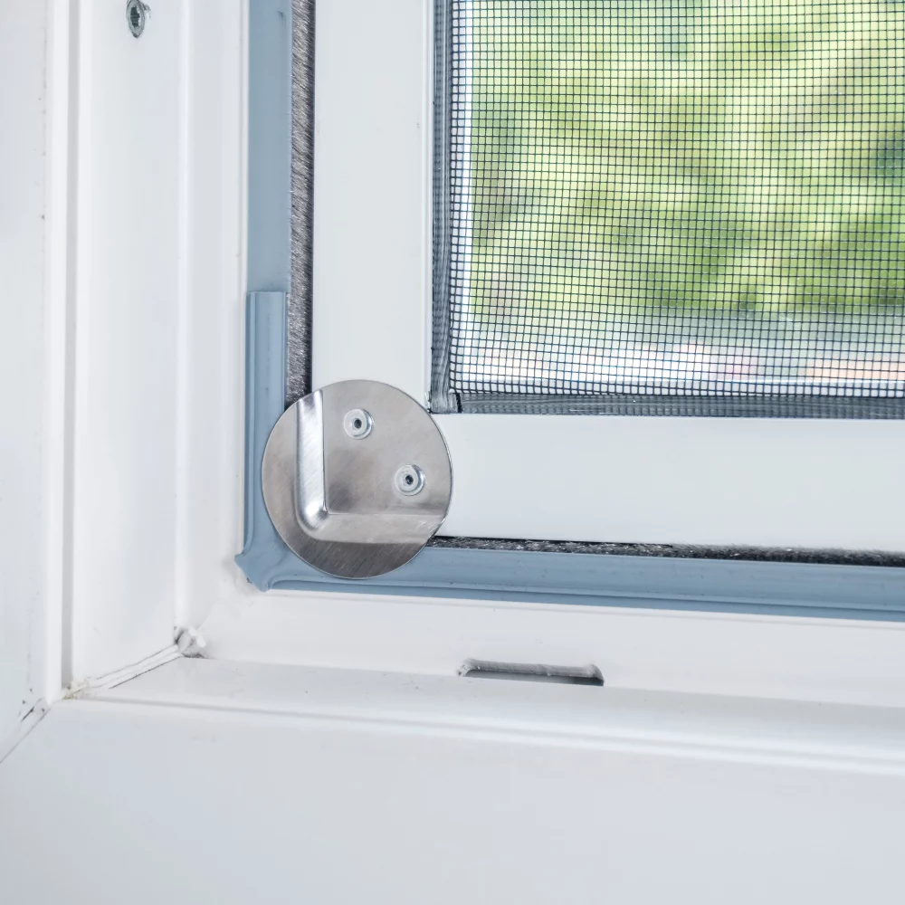 Le cadre de la moustiquaire s’aligne ensuite sur le dormant extérieur et repose devant le battant de votre fenêtre.